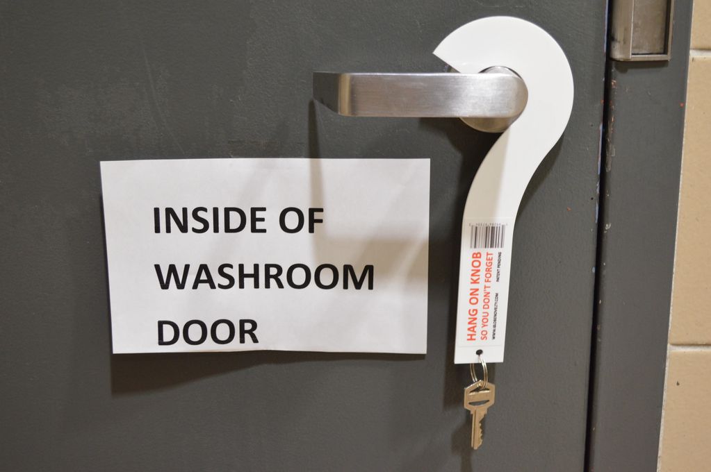 OUR INVENTED DOOR KNOB KEY HANGER SOLUTION FOR BUSINESS WASHROOMS !