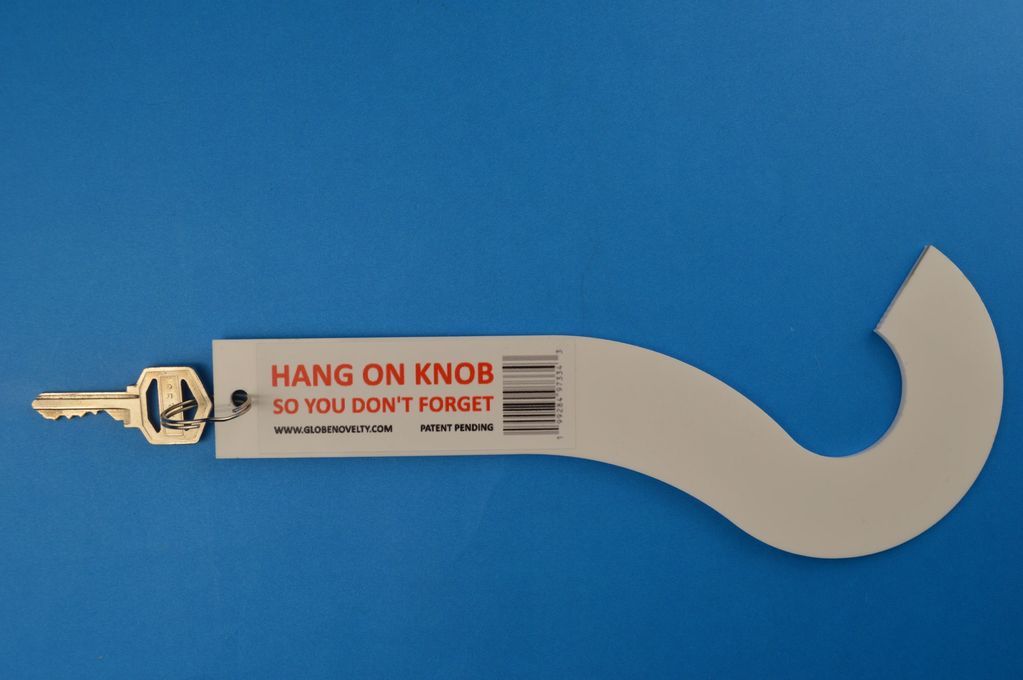 The Door Knob Key Hanger is hung inside the washroom door so when the customer leaves they do not forget the key inside the washroom and offers a more convenient placement than having to find somewhere clean to place it. It also helps the customer return the key to you, since some customers put the key in their pocket by accident and go home.